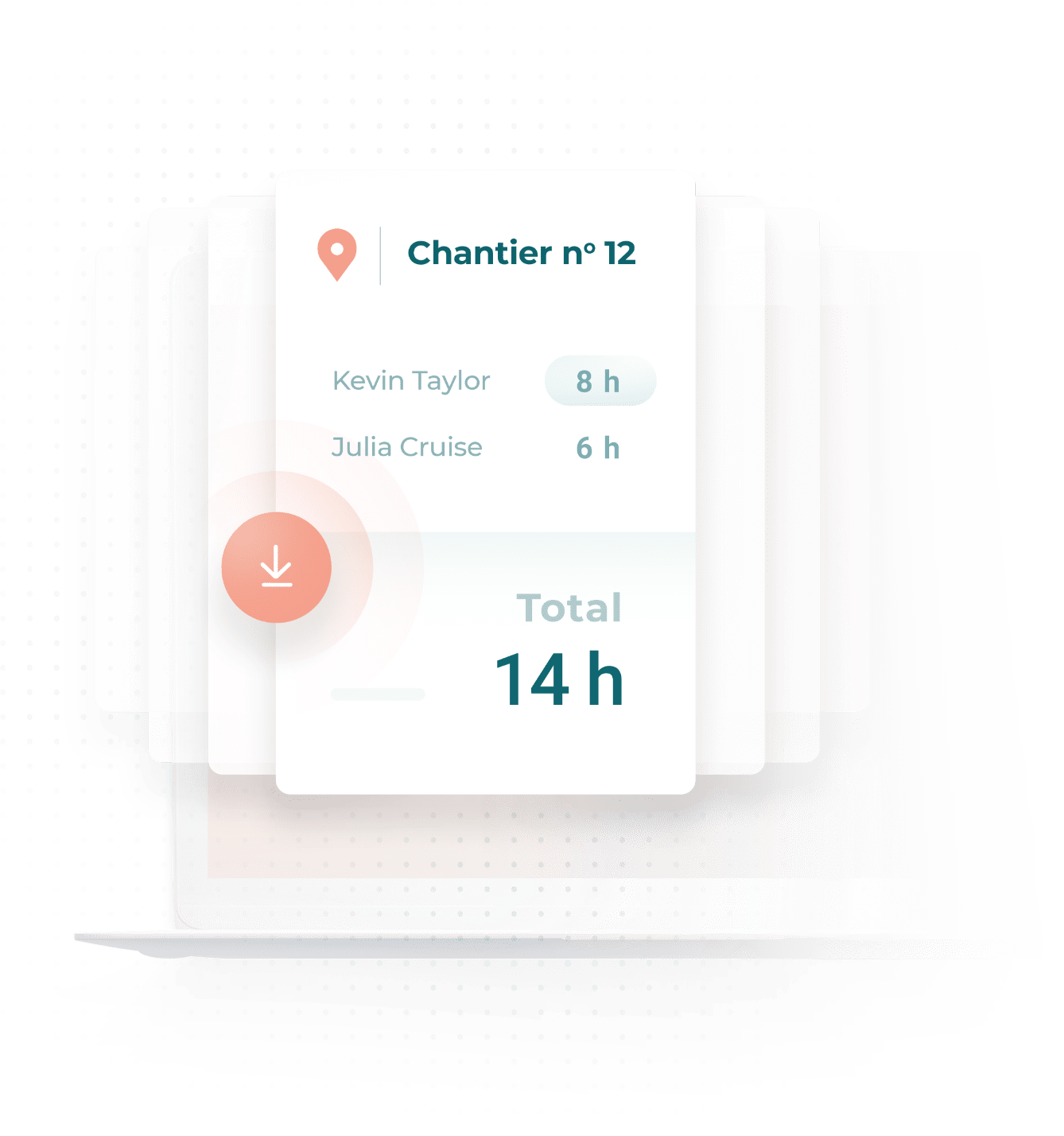 Faites pointer vos employés sur l’appareil de votre choix – tablette, téléphone ou ordinateur. Les heures d’arrivée et de sortie s’enregistrent automatiquement dans les feuilles de temps.