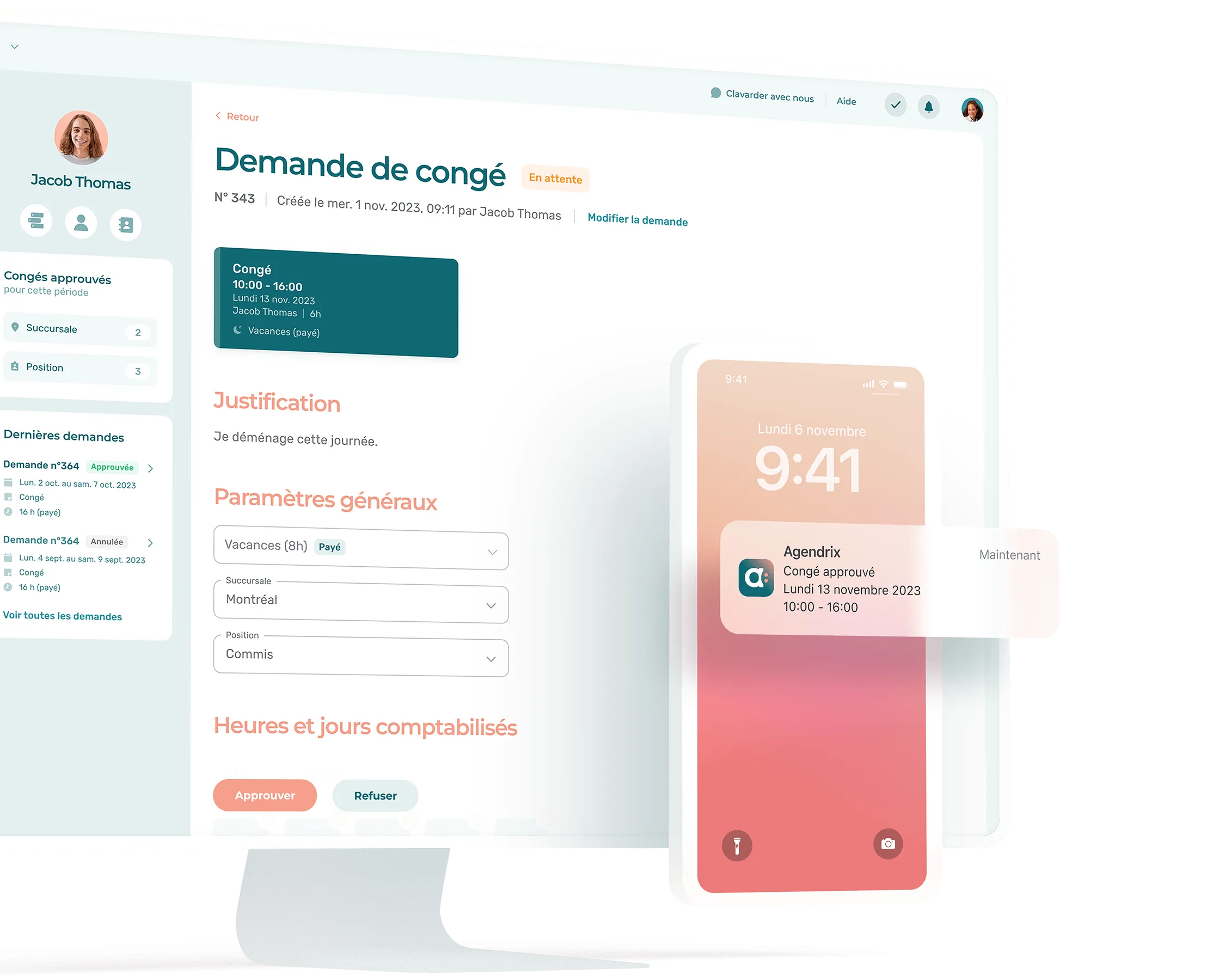 Traiter les demandes directement dans Agendrix vous permet de les gérer de manière asynchrone, au moment qui vous convient le mieux.