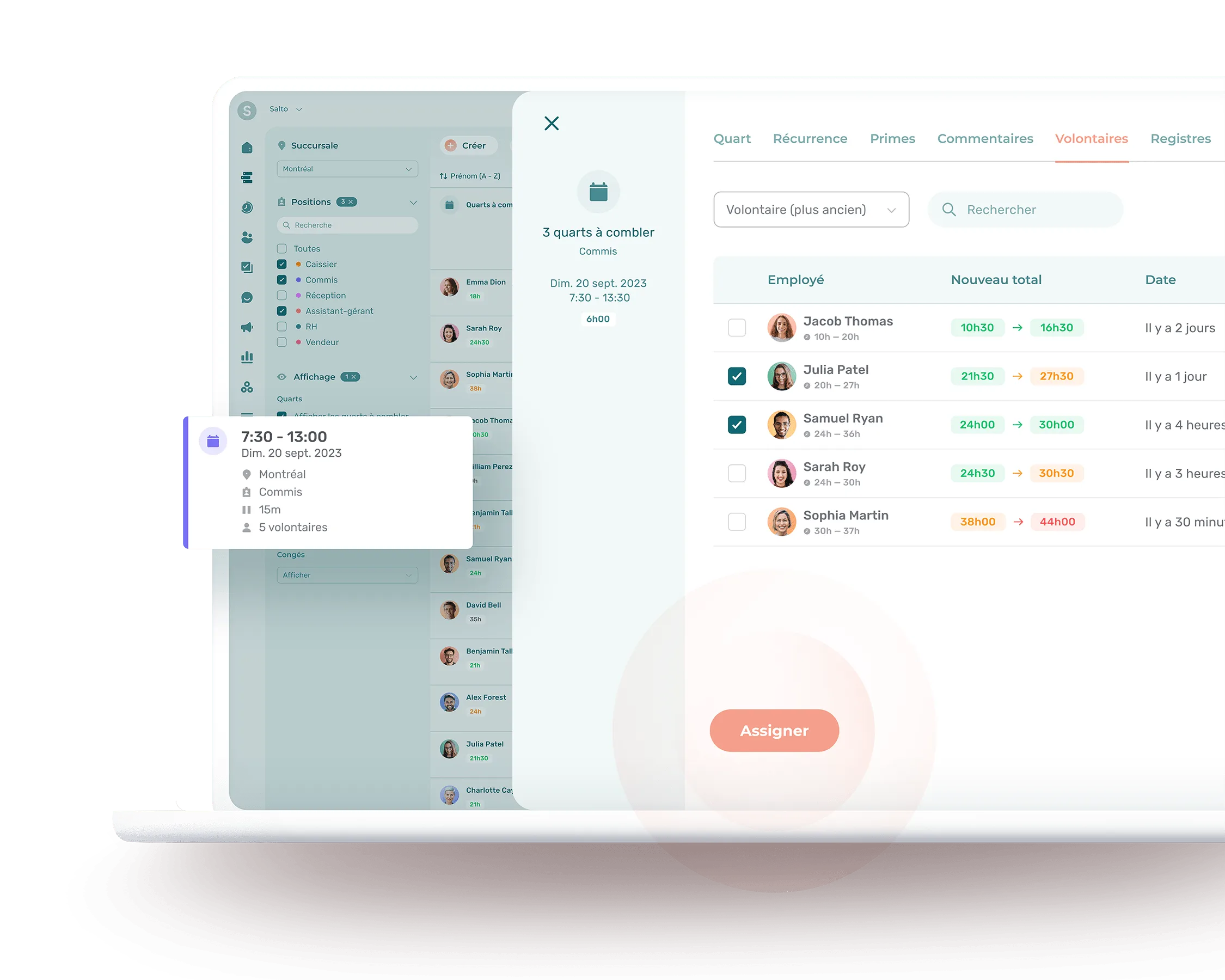 Assignez automatiquement des quarts de travail