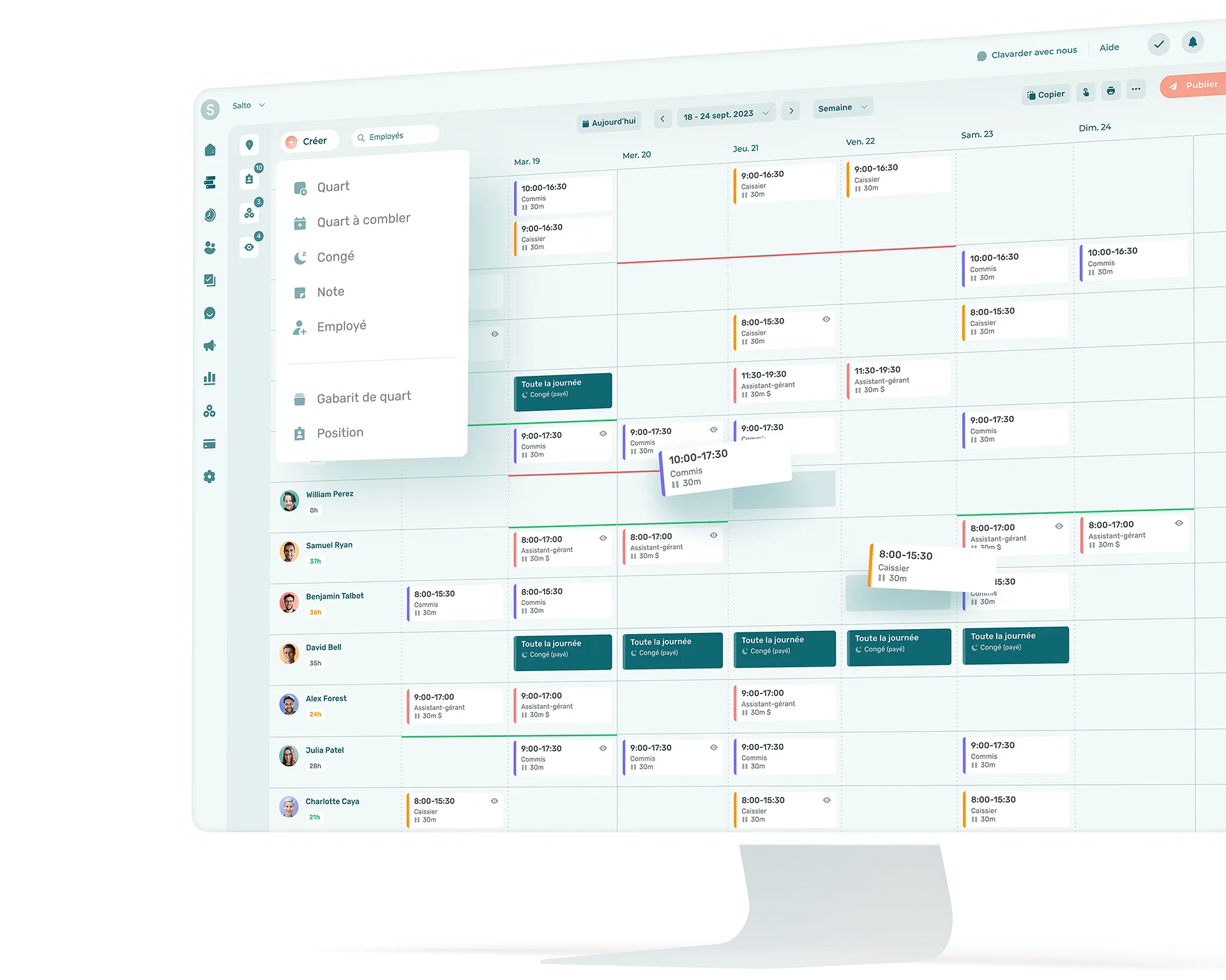 - Encourager vos employés à faire partie du processus de création (préférences, disponibilités, échanges de quarts, etc.);